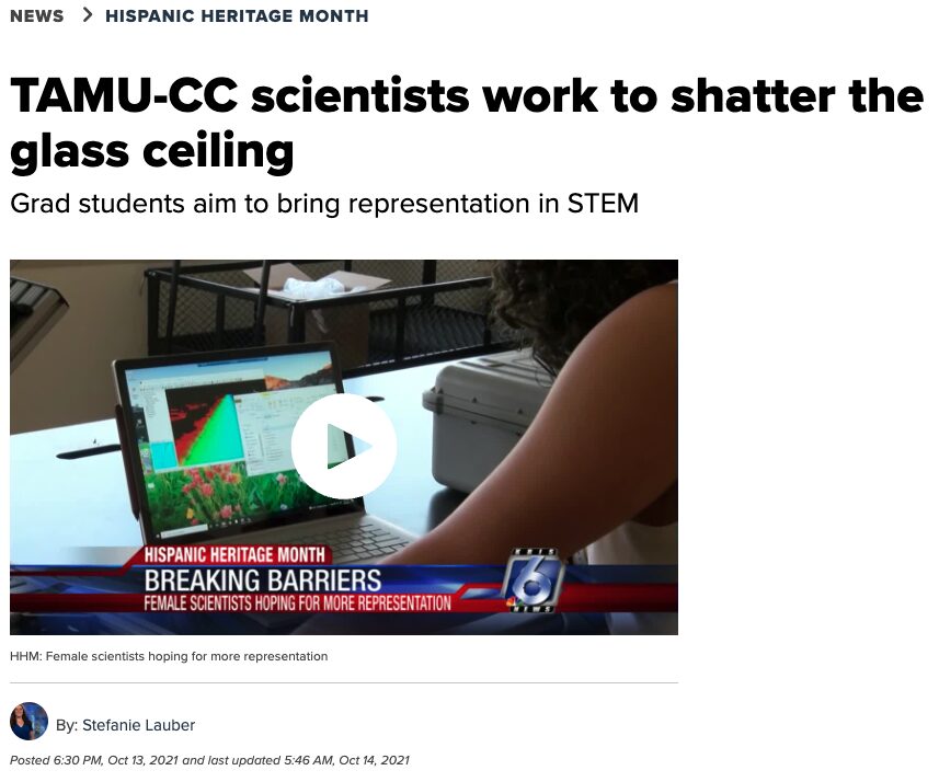 • AI2ES PhD student Marina Vicens-Miquel and fellow PhD student at the TAMU-CC Conrad Blucher Institute Isabel Garcia gave a TV interview (KRIS 6 News) on the topic “Hispanic women leading the way in STEM”